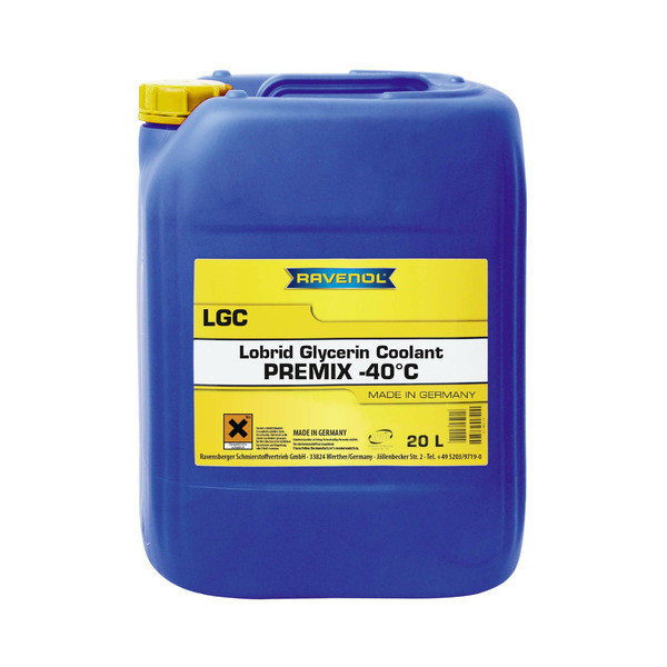 Антифриз RAVENOL LGC Lobrid Glycerin Coolant Premix -40°C – охлаждающая жидкость готовая к применению на основе 1.2-Ethandiol (моно этиленгликоля) с добавлением 20% глицерина и ингибиторов коррозии на базе силикатов с использованием органической технологии OAT. Не содержит бораты, нитриты, фосфаты. Обеспечивает долговременную (до 3 лет) антикоррозионную защиту алюминиевого двигателя как зимой, так и летом. Не опасен для окружающей среды.