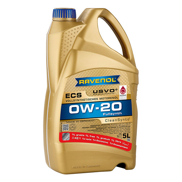 RAVENOL ECS 0W-20 – полностью синтетическое легкотекучее моторное масло, изготовленное с применением технологии CleanSynto® и USVO® для легковых бензиновых и дизельных моторов с и без турбонаддува и прямым впрыском топлива.