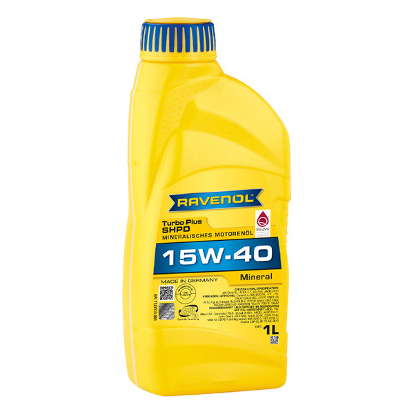 RAVENOL Turbo plus SHPD SAE15W-40 – минеральное моторное масло класса SHPD для смешанного автопарка. Предназначено для использования дизельных и бензиновых двигателей также с турбонаддувом. Гарантирует удлиненный интервал замены (согласно инструкции автопроизводителя).