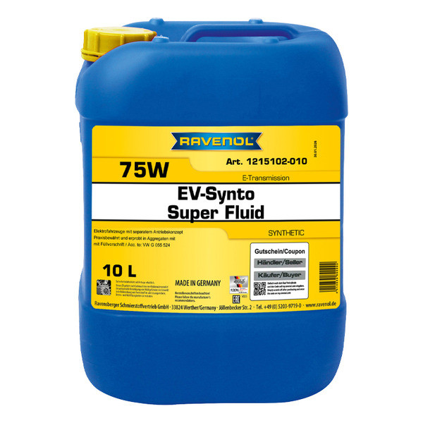 RAVENOL EV-Synto Super Fluid 75W E-TF идеально подходит для круглогодичного использования во всех современных электромобилях. Специальный пакет присадок соответствует требованиям многих ОЕМ.